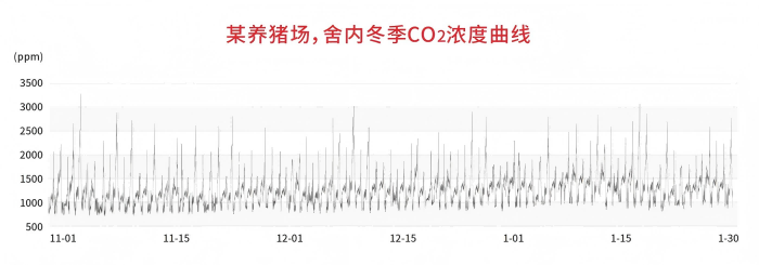 健康监测指标——稳定的CO₂浓度直接反映猪群规律作息、代谢节律与生长稳定,是健康养殖的重要监测指标。